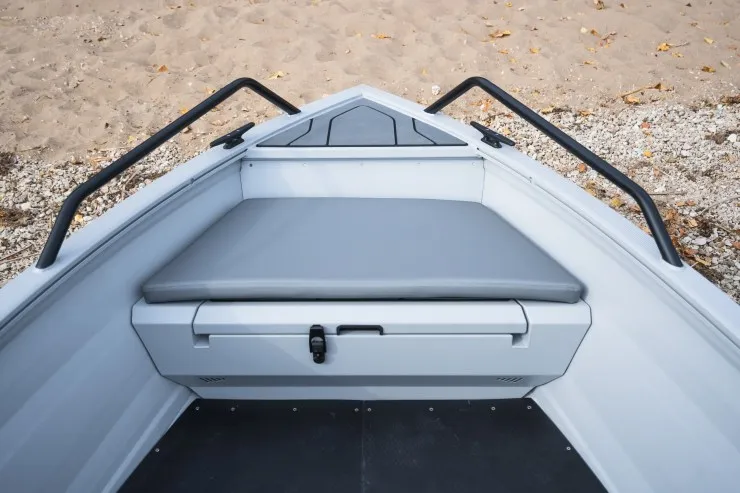 Цельносварной корпус выполнен из алюминиево-магниевого сплава 5083, что позволит вам передвигаться по мелкому водоему или мелководью не опасаясь повредить корпус.