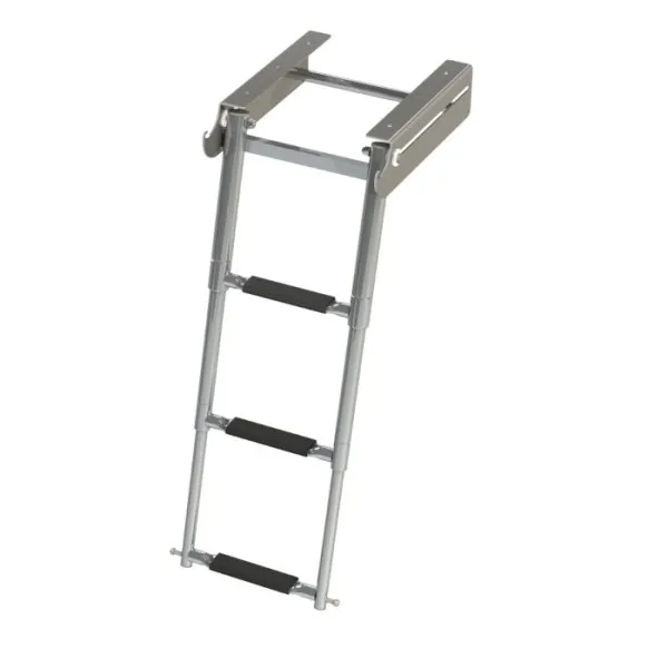 Трап выдвижной телескопический предназначен для установки в кормовой части плавсредства под горизонтальную площадку. В кассете трапа имеются фиксаторы виде крюков для предотвращения раскрытия трапа при движении судна.