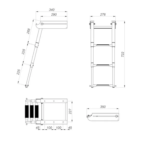 Трап телескопический выдвижной с фиксатором, 3 черных ступени (ширина 276 мм.)
