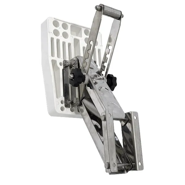 Предназначен для крепления вспомогательного подвесного лодочного мотора до 6 л.с. Имеет возвратную пружину, компенсирующую вес установленного двигателя и четыре фиксированных рабочих положения.